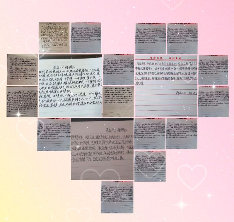 寫一份愛國書箋。主題征文活動發起后,各個班級積極組織學生參與,同學們緊緊圍繞“愛國心·報國情·強國志”書寫了自己的愛國情懷,同學們誓要繼承和發揚老一輩的光榮傳統,努力學習,塑造優良品格,為中華民族偉大復興而努力奮斗。