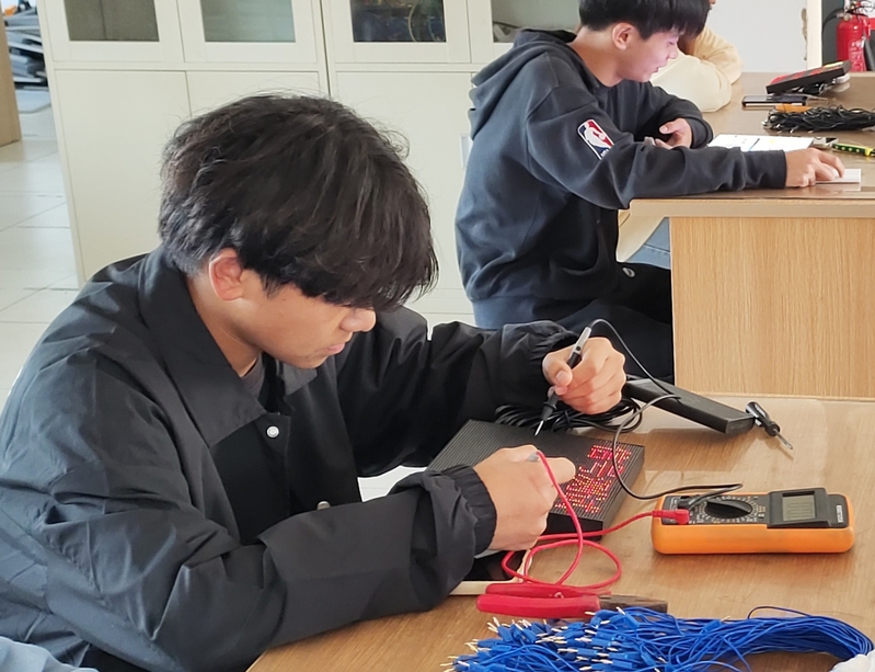 在本次LED屏作品征集中,智能光電專業的同學以及學院其他專業的LED制作愛好者積極參與,同學們利用自己在電工實訓和電子電工技術等課程中學習到的專業技能知識,在輔導員和專業教師的現場指導下,充分發揮自己的創造力,以“聚青春之光,喜迎二十大”為主題,創作出了豐富多彩的LED屏作品。“青春心向黨”“喜迎二十大開幕倒計時”等優秀作品在充分體現同學們扎實專業技能的同時,也充分展現著學子們的愛國熱情。經過參賽選手和指導教師的共同評比,活動選取了具有代表性的優秀作品予以表彰,并在學生公寓和教學樓進行輪播展出。