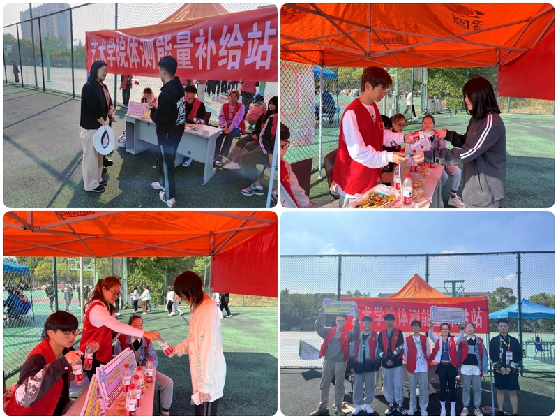 能量補給站,保障體測現場。為了保障我院學生體質健康測試順利有序進行,藝術創意學院在每場體測運動場邊設置了體測能量補給站,為學生免費提供飲水、巧克力、糖果、小面包和簡單醫療急救服務。學生如果在體測過程中發生突發狀況,可以及時尋求場邊志愿者的幫助。每場體測均有學院中層領導帶隊,輔導員值班,學生會成員組成志愿服務隊伍,及時解決學生問題,為我院學生順利完成體測保駕護航。