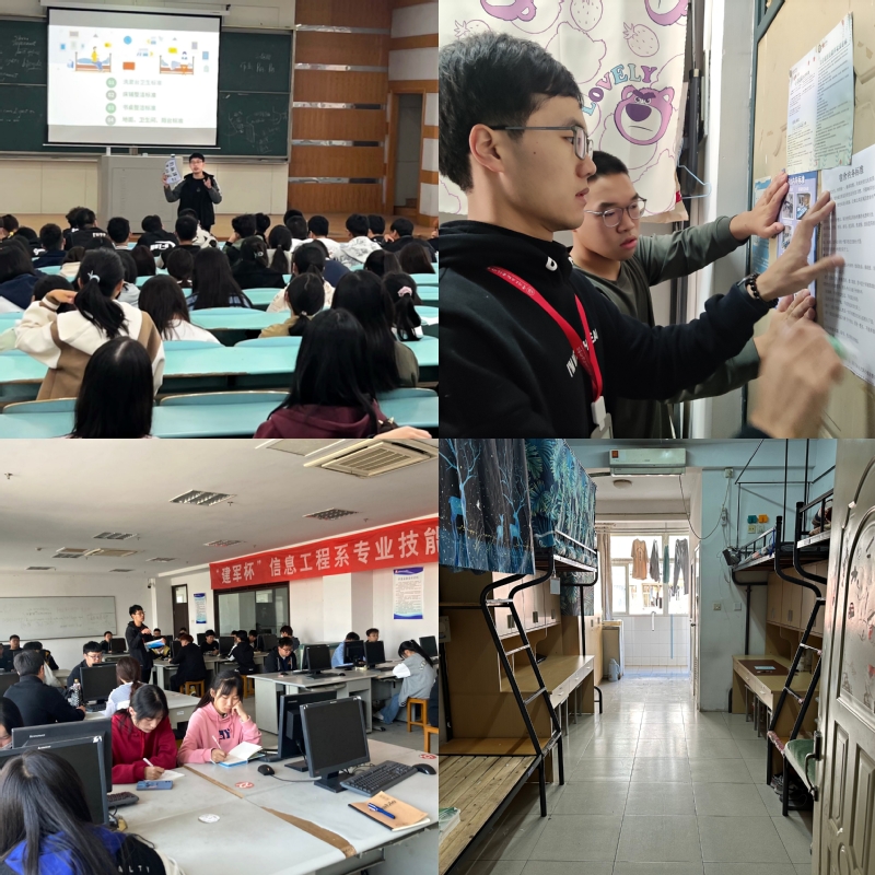 開展宣講動員,強化“網格管理”。為嚴格落實網格化管理要求,織密宿舍管理網,信息工程學院從10月10日起,開展為期一周的“勞動教育進宿舍”宣講活動。輔導員王至恒和蘭相波首先組織生活部成員召開全體會議,一方面,從崗位責任、工作方法、危機處理等方面對生活部成員的工作作出了部署和要求;另一方面,向廣大生活部成員培訓勞動教育相關知識。然后,以宿舍為單位,實施“包干到人”,劃分責任區,組織樓層長和生活部成員挨個宿舍進行勞動教育宣講,為廣大同學普及衛生健康知識,指導學生完善寢室勞動制度,嚴明宿舍內務標準,嚴禁違禁電器的使用,規范學生日常生活行為。本次宣講動員,充分發揮宿舍管理干部的模范帶頭作用,發動他們積極引導廣大學生學勞動之義、明勞動之理、悟勞動之美。