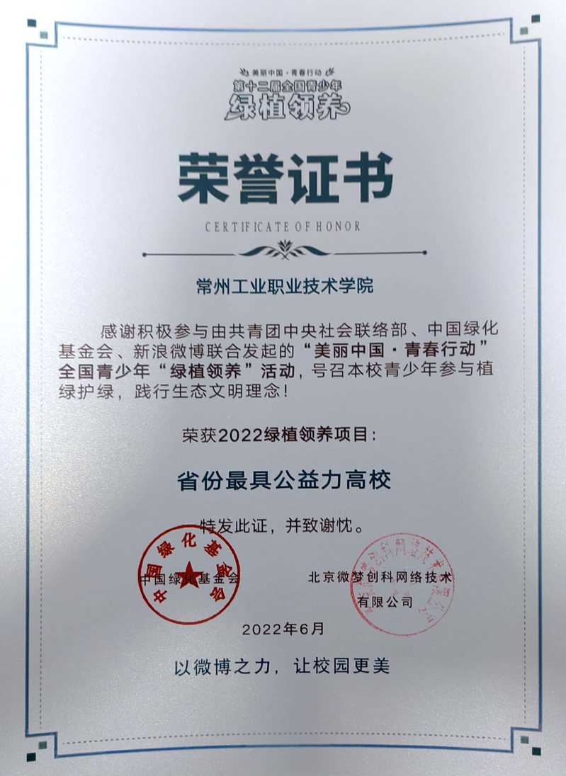 近日,由共青團中央社會聯絡部、中國綠化基金會、新浪微博聯合發起的“美麗中國·青春行動”全國青少年“綠植領養”活動落下帷幕,我校榮獲2022綠植領養項目“省份最具公益力高校”。本屆活動以高校團員青年為重點群體,共有全國25個省級團委官微在微博平臺積極發聲,1238所高校官方微博參與線上活動,廣泛覆蓋126.12萬在校大學生。