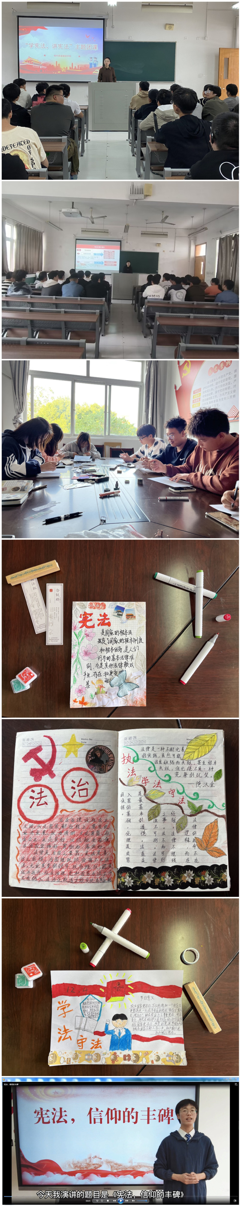 輔導員帶你一起班團課切實增強法律意識。現代裝備制造學院輔導員走進各班、團支部開展形式多樣的班會、團課學習。班團課中,輔導員老師們通過播放視頻,現場授課、制作學憲法手賬等形式,向學生介紹了憲法作為我國根本大法的地位、重要性、憲法實施背景和憲法監督機構以及憲法主要內容等基本常識。