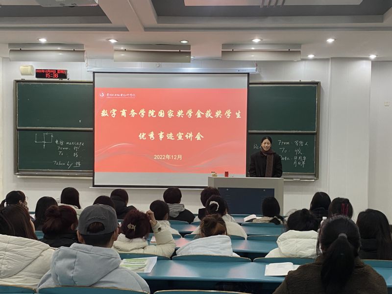 組織“青春心向黨、奮斗正當時”國家獎學金獲獎學生優秀事跡宣講會。為發揮榜樣力量,激勵廣大學生開拓進取,近期,經貿管理學院國家獎學金獲獎學生進班進行宣講。市場營銷專業的王凱歌把豐富多彩的志愿實踐活動、充滿挑戰的創新創業大賽和孜孜不倦的專業學習有機融合,畫出多彩的大學生活圖景。國際商務專業的詹章瑩結合參加全國職業技能大賽取得銅獎的經歷和班級工作告訴大家唯有腳踏實地、徐徐圖之,方能厚積薄發。