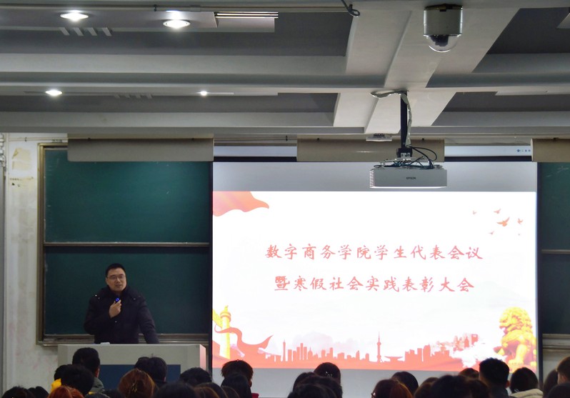 為認真落實習近平總書記關于青年工作的重要思想,展示大學生寒假社會實踐成果,鼓勵青年學生積極參加社會實踐,進一步引導同學們在“社會大課堂”中增強社會責任感、創新精神和實踐能力,數字商務學院于2月15日在知行樓2107召開“學生代表大會暨寒假社會實踐表彰會”,會議由數字商務學院分團委書記徐克選主持,學院黨總支副書記馬軍、學生干部及部分學生代表參加會議。