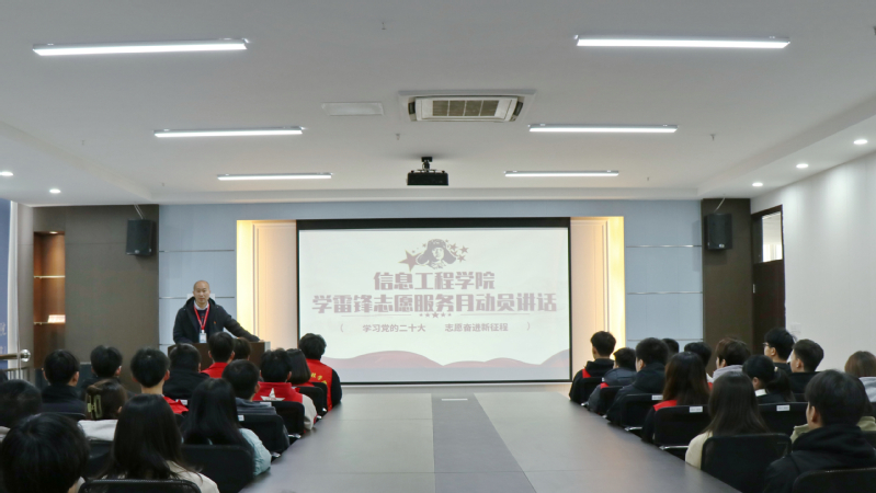 在第24個“中國青年志愿者服務(wù)日”來臨之際,為深入學(xué)習(xí)宣傳貫徹黨的二十大精神,貫徹落實習(xí)近平總書記重要指示精神。3月5日,信息工程學(xué)院舉行學(xué)雷鋒志愿服務(wù)月啟動儀式。信息工程學(xué)院黨總支書記李維、副書記趙云,信息工程學(xué)院輔導(dǎo)員及學(xué)院青年志愿者服務(wù)隊出席啟動儀式,儀式由信息工程學(xué)院輔導(dǎo)員張靜文主持。