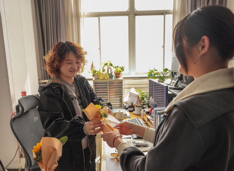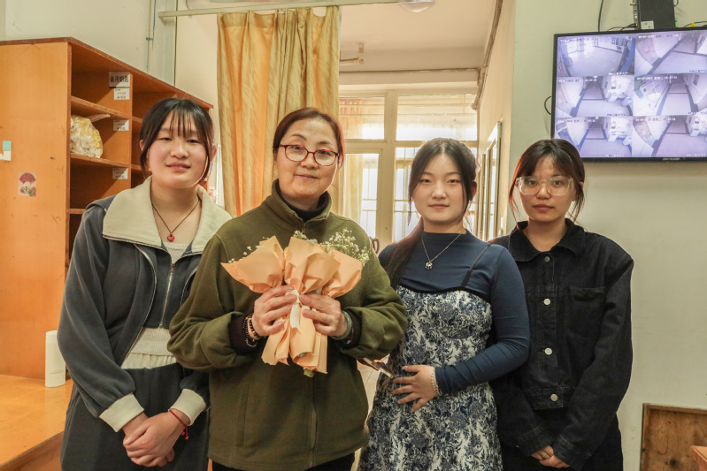 學院青年學子親手制作鮮花、寫下祝福的賀卡,學院分工會主席龍慧和學生在這個特殊的節日里一起給女老師和宿舍阿姨送上節日祝福。同時,同學們還開展“我想對你說”活動,鼓勵同學們給媽媽打電話、拍視頻、寫信來表達自己對母親的愛和關心,勇敢說出自己的心聲。