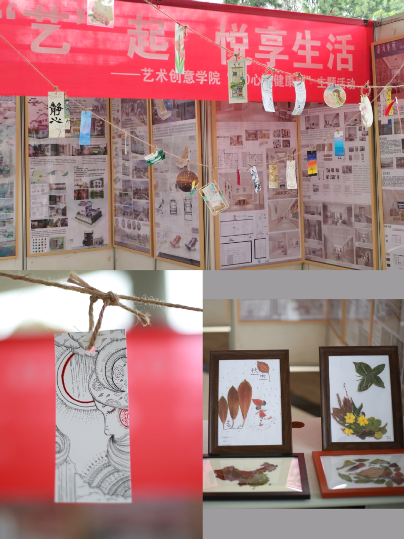 為加強學(xué)生心理健康意識,奏響心靈之美舞曲,3月23日,藝術(shù)創(chuàng)意學(xué)院以“你我‘藝’起 悅享生活”為主題,精心籌備3﹒20心理健康周活動,舉辦了心理書簽、樹葉貼畫作品展。藝術(shù)創(chuàng)意學(xué)院2021級和2022級部分學(xué)生參加了活動。