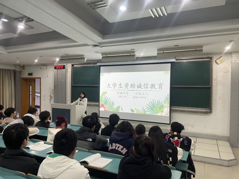 朱菁在宣講中介紹了目前我校提供學生資助的渠道,包括國家資助、學校資助、助學貸款和社會捐贈等內容。結合國家助學金申請流程和助學貸款還款相關注意事項,朱菁強調了信用的重要性,告誡同學們在資助申請中秉持誠信原則如實填寫個人家庭困難情況,一定要樹立誠信觀念、信守承諾、履行義務。國家助學貸款是國家資助家庭經濟困難學生的一項惠民政策,給家庭困難學生提供學費保障,學生在學校就讀期間由國家和學校共同承擔貸款利息,待畢業后要按時還款,避免造成信用缺失。