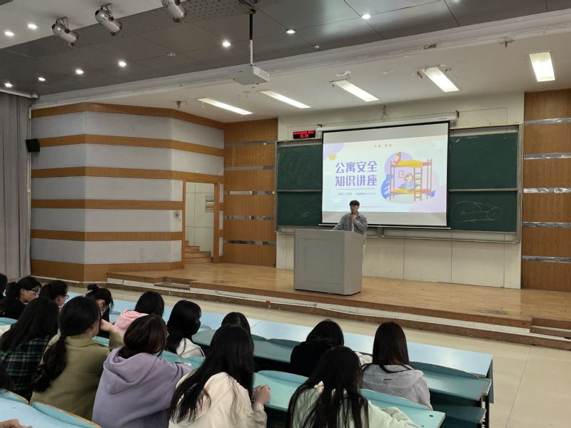 杜嘉豪首先圍繞著宿舍人身安全、宿舍消防安全、宿舍財產安全三個方面與學生展開討論,通過真實的案例向學生說明因安全意識疏忽可能帶來的巨大危害。他強調,目前公寓安全事故主要存在于上鋪同學摔落、使用大功率電器造成火災、宿舍內財務失竊等。隨后就目前存在的問題開展公寓安全知識科普,引導學生恪守上下鋪安全原則,熟記宿舍消防十二條,踐行防盜基本法,提醒同學們務必小心在意,防患于未然。