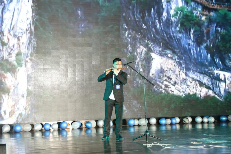 比賽在樂隊合奏《卡農》歡快、活潑、極富變化性的音律中拉開帷幕,同學們或用華美古樸的民族樂器二胡、竹笛,或用典雅時尚的西洋樂器吉他、架子鼓,為觀眾帶來一場視聽盛宴。竹笛獨奏《春到湘江》展現了三月桃花映日紅,湘江水暖柳煙濃的美景;鋼琴獨奏《梁祝》柔美、深情的旋律打動了多少愛樂人的心;吉他口琴合奏《花?!烦錆M了遺憾和悲傷,然而在悲傷的氛圍中,又帶領著我們向前邁進;鋼琴獨奏《萬疆》演奏出華夏土地歷經了無數的風風雨雨,在陽光的照耀下,熠熠生輝,也唱出了中華兒女的愛國情懷;吉他獨奏《Flaming》搖晃的旋律,無不展現青春的氣息;大學生藝術團《我愛你中國》動人心弦的舞蹈,表達對祖國母親最真摯的感情。