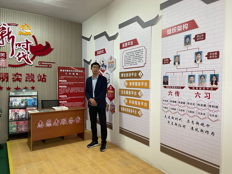 在村委書記嚴清華的帶領下,輔導員陸成龍、譚家皓帶領社會實踐團隊部分成員聆聽了“慶豐收,感黨恩”的主題講述,觀看了《種下一?!包S金米”,托起共富“黃金夢”》的宣傳視頻,“黃金村憑借‘稻米經’走出的‘黃金道’真是讓人非常震撼!”在場師生對黃金村從當地有名的貧困村、落后村,發展成如今村集體年收入470萬元,固定資產7500萬元,實現大規模、機械化的種植“黃金米”的“全國文明村”紛紛表示驚嘆。