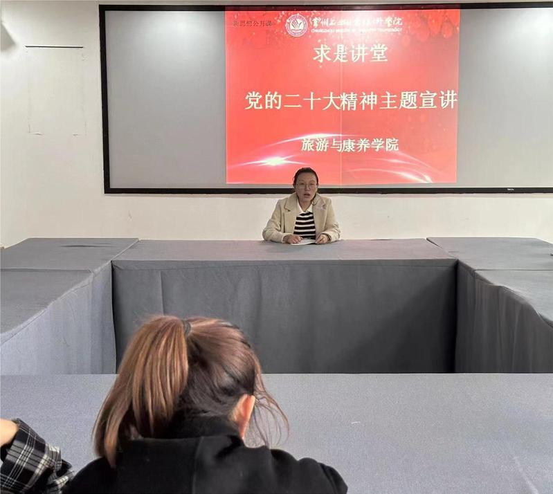 為進一步深入學習貫徹黨的二十大精神,提升學生的學業自信心和時代責任感,“一站式”社區旅游與康養學院輔導員工作室于近期組織開展黨的二十大精神系列宣講活動。學院黨總支副書記郭媛、輔導員楊天予、譚家皓、邱博雅面向不同學生群體開展系列宣講。