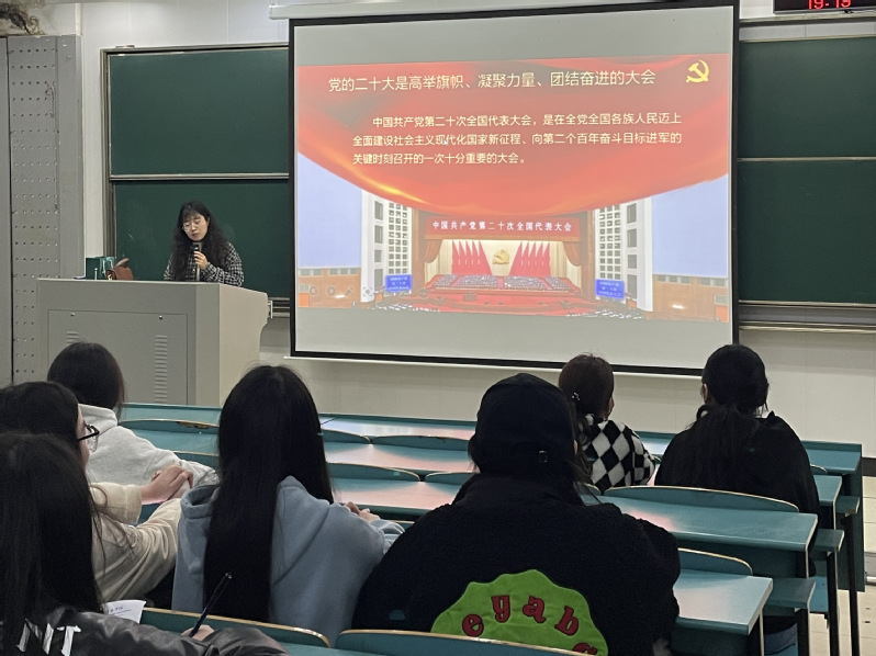 邱博雅主要圍繞黨的二十大主題及主要成果,引領學生回顧過去5年的工作和新時代10年的偉大變革,以新時代新征程中國共產黨的使命任務和中國式現代化的中國特色及本質要求等4個方面,對黨的二十大精神做出詳細解讀,引導學生樹立大局觀,增強政治意識、責任意識,與自身實際相結合,堅定理想信念,腳踏實地,提高專業技能,樹立短期和長期目標,做好職業生涯規劃,多方面鍛煉自己,趁著新時代的春風,提高自身綜合素質。