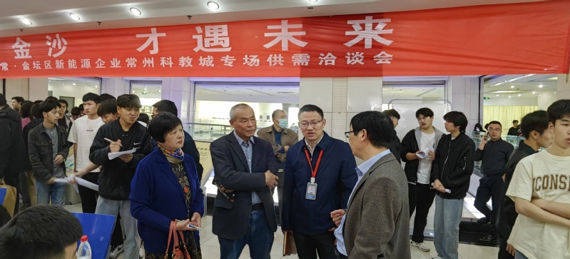 為積極落實(shí)黨的二十大提出的“就業(yè)優(yōu)先戰(zhàn)略”,助力常州“新能源之都”建設(shè),推進(jìn)“美麗常州金壇樣板”建設(shè),促進(jìn)我校畢業(yè)生高質(zhì)量充分就業(yè),4月22日,智薈金沙 才遇未來——青春留?!そ饓瘏^(qū)新能源企業(yè)常州科教城專場(chǎng)供需洽談會(huì)在我校舉行。機(jī)械與交通學(xué)院關(guān)工委副主任劉建明、委員張燏來到招聘現(xiàn)場(chǎng),面對(duì)面指導(dǎo)畢業(yè)生求職就業(yè)。