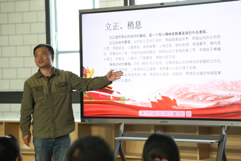 首先,譚家皓老師講述了國旗禮儀相關(guān)內(nèi)容,20余名小學(xué)生穿著統(tǒng)一的校服,全神貫注地聽著,與老師頻頻互動、氣氛活躍。然后,我院學(xué)生志愿者指導(dǎo)在場小學(xué)生練習(xí)持槍動作,了解槍支的構(gòu)造、持握和姿勢。最后,學(xué)生志愿者對在場小學(xué)生進(jìn)行軍姿和擎旗訓(xùn)練,對學(xué)生們每一個動作都反復(fù)糾正,一遍又一遍地演示,引導(dǎo)小學(xué)生們強(qiáng)化愛國意識,激發(fā)報國志向,用中國夢引領(lǐng)人生航向。