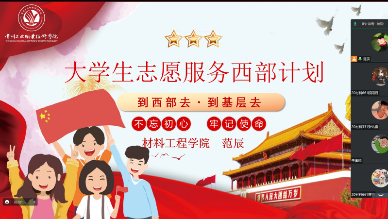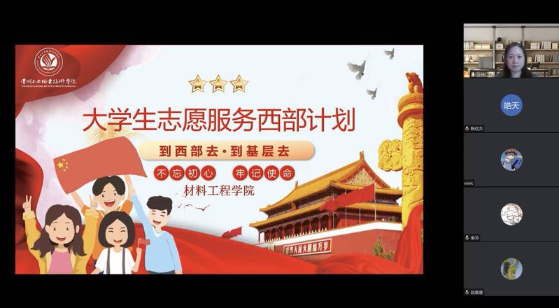 材料工程學院團委還以主題團日活動的方式為2023年西部計劃進行招募宣講,引導和鼓勵青年大學生積極響應大學生志愿服務西部計劃的號召,推進大學生志愿服務西部計劃和2023年江蘇省大學生志愿服務鄉村振興計劃實施,幫助同學們了解“西部計劃”招錄考試,解除備考困惑,提升就業意識,明確擇業方向。
