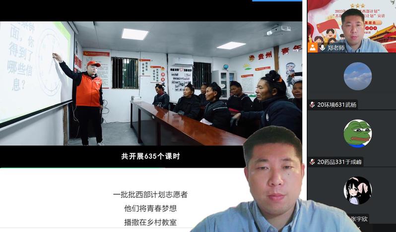 近日,材料工程學院舉辦“服務基層,綻放青春”信仰公開課暨2023年西部計劃招募線上宣講會。宣講會伊始,鄭新濤從報名方式、選拔標準、志愿者保障等方面對西部計劃進行了全面介紹和政策解讀。他向畢業班的同學們介紹了西部計劃與2023年江蘇省大學生志愿服務鄉村振興計劃的主要服務內容和意義,鼓勵同學們扎根一線、扎根基層、扎根西部,扎根在祖國最需要的地方和區域。