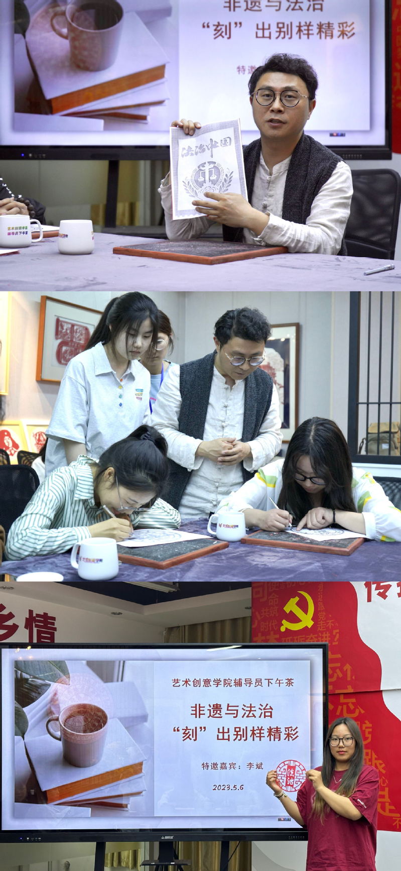 本次活動讓同學們在感受著金壇刻紙無限魅力的同時,沉浸在學法的濃厚氛圍中,法治理念就這么以潤物細無聲的方式傳遞著。接下來,藝術創意學院將繼續探索把法治元素融入非遺傳統文化,創新法治宣傳形式和內容,增強法治宣傳的針對性和有效性,讓法治與傳統文化碰撞出更燦爛的火花。
