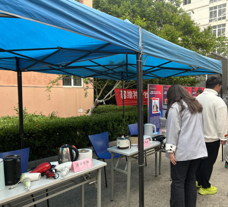 為提高學(xué)生宿舍安全意識(shí),學(xué)院開(kāi)展違禁品展示活動(dòng),本次展示的物品以電熱水壺、電煮鍋、大功率電吹風(fēng)、卷發(fā)棒、暖手寶、電熱毯等違章電器為主,甚至還有電磁爐、匕首、火鍋、打火機(jī)油等物品。輔導(dǎo)員老師對(duì)每一個(gè)參觀同學(xué)講解違規(guī)電器的危害,同時(shí)結(jié)合近年學(xué)生宿舍典型火災(zāi)圖片的展板,向?qū)W生展示和講解了因使用違禁電器導(dǎo)致高校宿舍發(fā)生火災(zāi)的事故案例。
