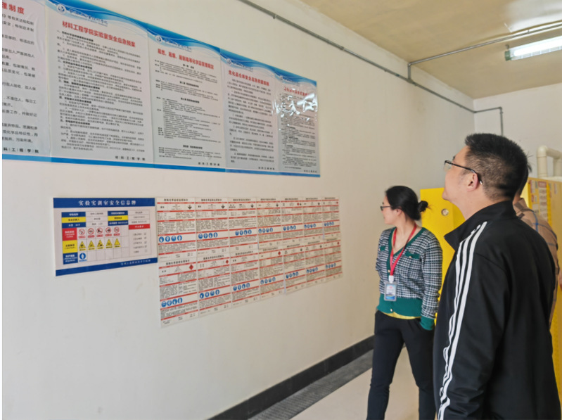 丁華峰帶隊一行先后來到機械與交通學院、旅游與康養學院、智能控制學院和材料工程學院等重點實驗實訓場所,實地檢查實驗室日常管理、危險化學品流轉使用、實驗室消防安全等方面情況,并與實驗室負責人進行現場交流。