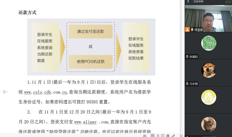 為推進我院國家助學貸款工作可持續發展,切實做好畢業生貸后管理工作,確保助學貸款還款工作有序進行。5月11日,智能控制學院通過騰訊會議召開2023屆國家開發銀行貸款畢業生“誠信還款教育宣講活動”。本次活動由智能控制學院資助輔導員周龍成老師主持,2023屆助學貸款畢業學生參加本次宣講活動。