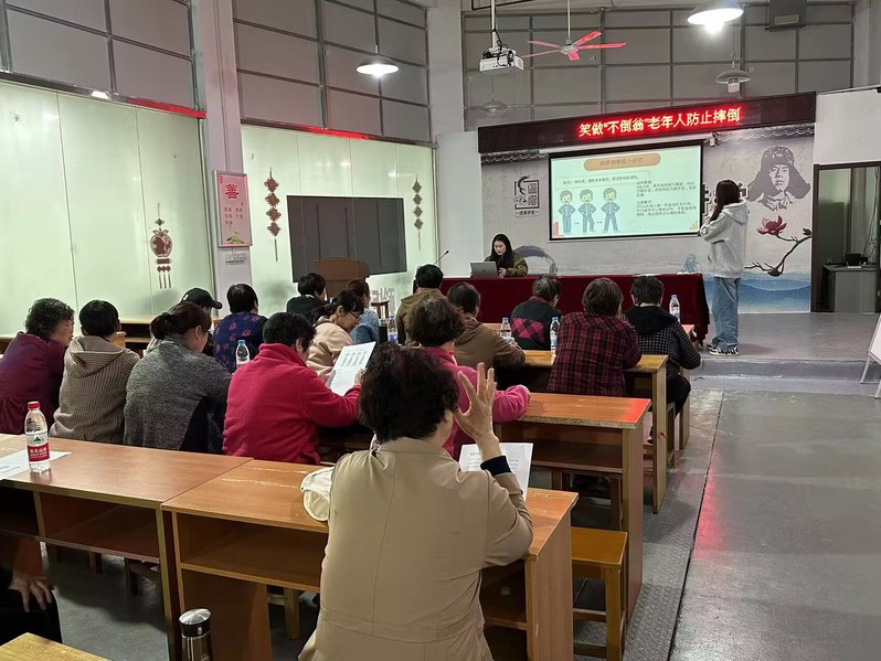開展“笑做不倒翁”知識(shí)講座。5月7日,學(xué)生團(tuán)隊(duì)在沈家弄村委2樓會(huì)議室開展了“笑做不倒翁”老年人防跌倒知識(shí)講座,同時(shí)也開展了“笑做不倒翁”運(yùn)動(dòng)健身防跌倒講座。講座中,董婉圍繞老年人跌倒的危害、容易跌倒的原因、預(yù)防跌倒的方法和跌倒后的救助措施等內(nèi)容,通過圖文并茂的方式進(jìn)行生動(dòng)講解,并聯(lián)系身邊真實(shí)案例,建議老年人合理膳食防止骨質(zhì)疏松,定期進(jìn)行身體檢查,盡量穿合身的寬松衣服、鞋底防滑耐磨的鞋子,將常用的東西放在伸手可拿的位置,從生活中的細(xì)節(jié)出發(fā)預(yù)防跌倒。郝雯雯從運(yùn)動(dòng)健身防跌倒進(jìn)行拓展,講解運(yùn)動(dòng)健身的4大要點(diǎn),董碩則示范帶領(lǐng)在場(chǎng)聽眾做運(yùn)動(dòng)健身防跌倒的一些小招式,手指操之類的。老人們非常配合,積極參與互動(dòng)合作,給這場(chǎng)活動(dòng)增添了不少歡聲笑語。此次講座讓老人們深入學(xué)習(xí)了預(yù)防跌倒的安全知識(shí),提高了他們的自我保護(hù)意識(shí),有助于提高社區(qū)老年人的晚年生活質(zhì)量,營(yíng)造幸福和諧的良好社區(qū)氛圍。