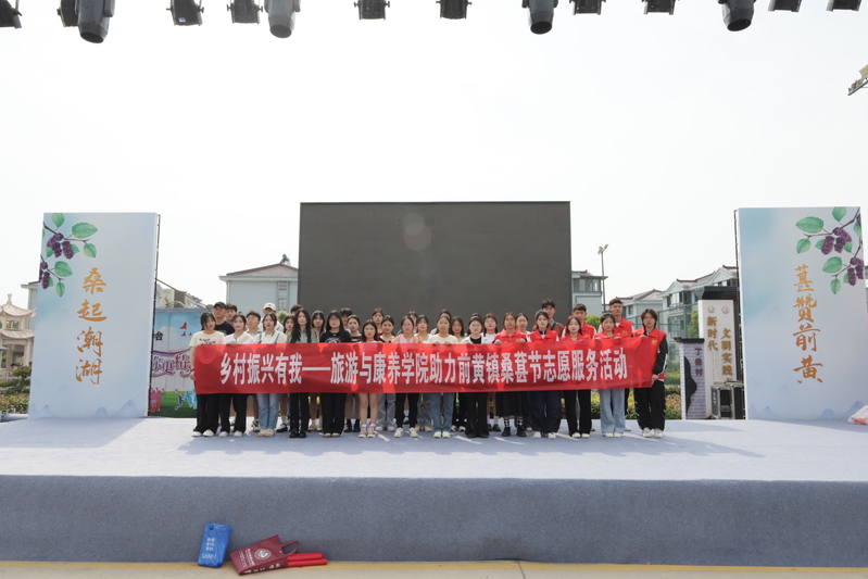 為積極引導學生深入基層一線,助力鄉村振興建設,5月13日,旅游與康養學院聯合校大學生藝術團共同承辦前黃鎮桑葚節志愿服務,開展“以桑會友 葚贊青春”鄉村振興主題實踐活動,由學生會干部、學生黨員、大學生藝術團成員組成的50余名志愿者參與本次活動。