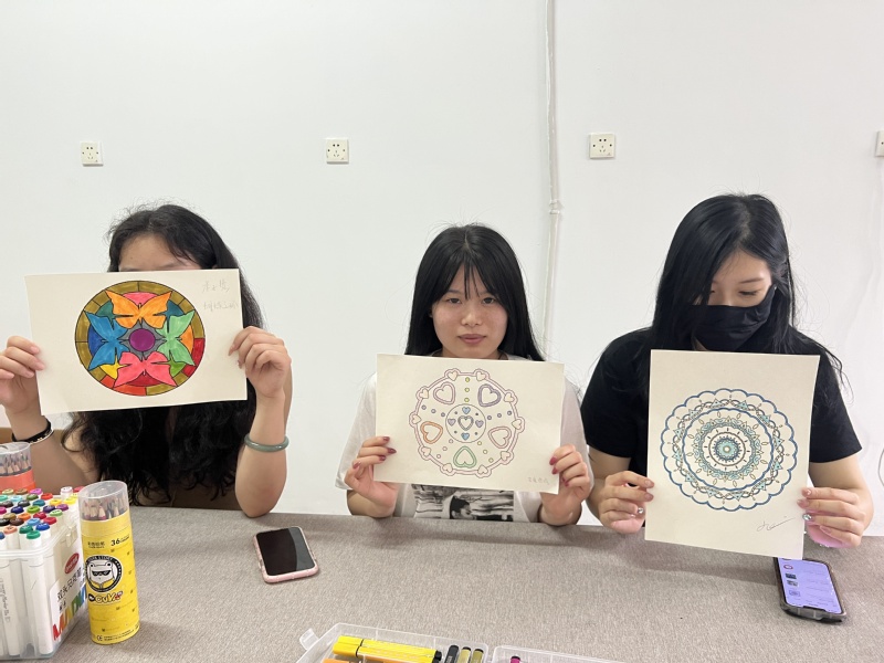 “畫出你的情緒”曼陀羅繪畫活動。5月30日,心理輔導站在1號樓一站式學生社區(qū)學生活動室開展曼陀羅繪畫活動,活動由心理輔導員楊天予主持,江理工實習生吳越塵主講。曼陀羅繪畫可以平復心情、減少焦慮、疏通情緒,在提高學習效率、完成學習任務、提高人際交往水平和生活質量方面有著重要意義。活動開始,老師向同學們普及了曼陀羅繪畫的由來、含義以及作用;接著,同學們在老師的帶領下進行結構化曼陀羅的自由創(chuàng)作;最后老師向各位同學簡單解讀了他們所畫的曼陀羅,解讀結果不重要,學會舒緩情緒,與自己和解才是本節(jié)課的真諦。