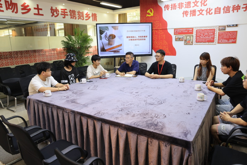 為推動學習貫徹習近平新時代中國特色社會主義思想主題教育走深走實,鑄牢中華民族共同體意識,推進新時代黨的民族工作高質量發展,全面了解學院少數民族學生的學習、生活情況,不斷提升少數民族學生教育管理服務水平,6月1日下午,藝術創意學院于敬業樓舉辦輔導員下午茶之“團結民族心,共筑中國夢”活動。副院長孫軍、輔導員肖克、朱益桐及全體21、22級少數民族學生代表參加本次活動,活動由肖克主持。