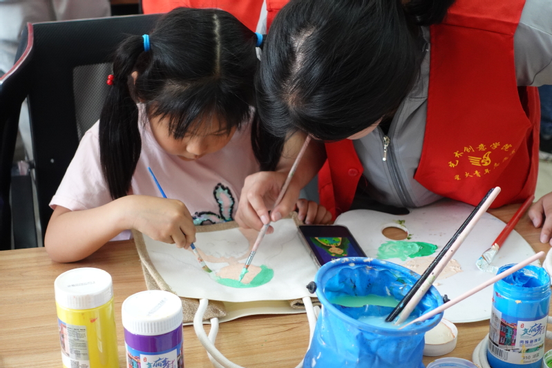活動當天,藝術創意學院的大學生志愿者們精心制作了世界環境日介紹內容,向社區小朋友們講解了世界環境日的來歷、今年“世界環境日”的主題以及當前我國環境保護所面臨的嚴峻形勢,讓在場的每位小朋友都能夠了解環境保護的重要性,培養小朋友們的環保意識。大學生志愿者們還和社區小朋友們一起參與“環游世界”互動小游戲,讓小朋友們通過游戲,了解世界、增長知識。隨后,在大學生志愿者們的協助下,小朋友們手繪環保帆布包,志愿者們充分發揮自己的專業特長,耐心指導社區小朋友繪制各種充滿創意的環保圖案,在大家的共同努力下,一幅幅環保主題的帆布包作品呈現在大家眼前。希望今后大家在生活中都能夠多使用環保購物袋,減少塑料制品的使用,共同保護我們的生態環境。