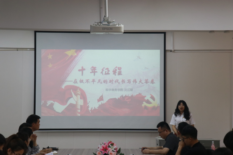 為扎實推動主題教育走深走實,將習近平新時代中國特色社會主義思想轉化為堅定的理想信念、純粹的黨性修養及扎實的實踐基礎,6月22日,數字商務學院學生黨支部開展學習貫徹習近平新時代中國特色社會主義思想主題教育專題黨課。黨課由,學生黨支部書記徐克選、支部委員沈江凝主講,支部全體黨員、入黨積極分子、團學干部共同參與。