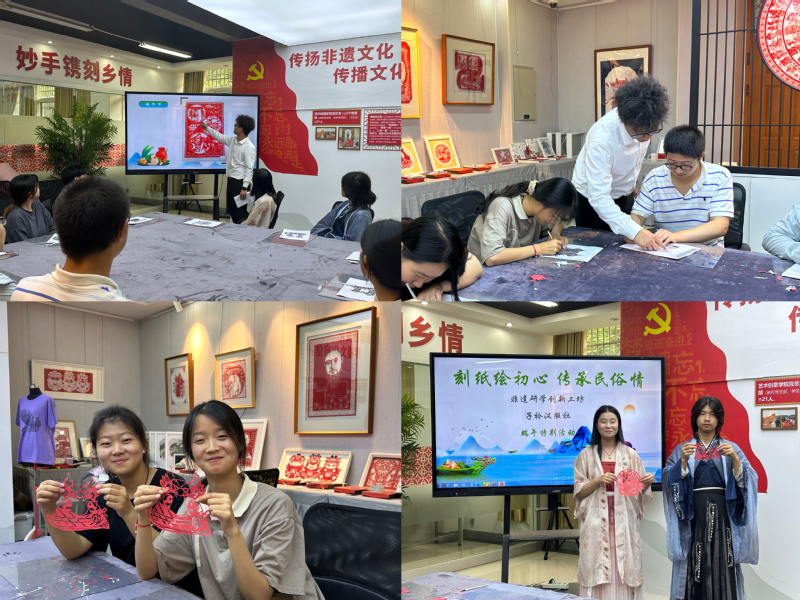 為豐富我校學生精神文化生活,弘揚中華優秀傳統文化,在端午節來臨之際,藝術創意學院非遺創新研學工坊與子矜漢服社團共同開展了“刻紙繪初心,傳承民俗情”端午特別活動。