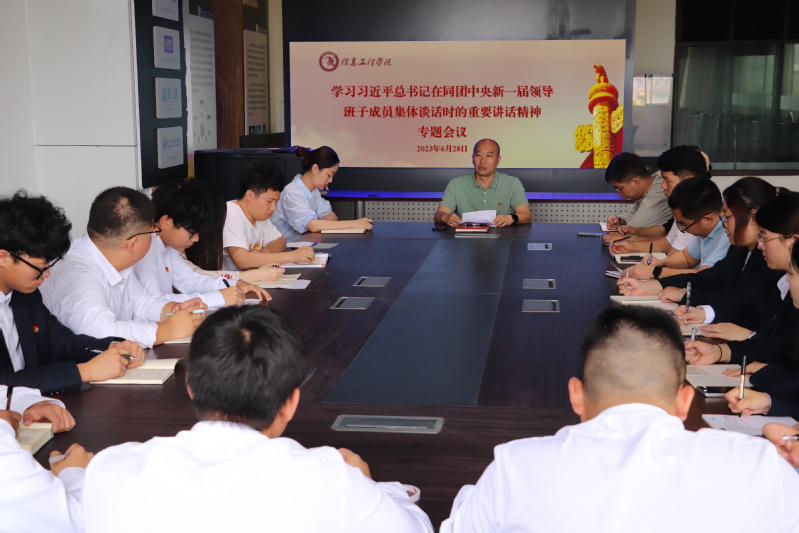 6月26日下午,習(xí)近平總書記在中南海同團(tuán)中央新一屆領(lǐng)導(dǎo)班子成員集體談話并發(fā)表重要講話。為深入學(xué)習(xí)傳達(dá)習(xí)近平總書記同團(tuán)中央新一屆領(lǐng)導(dǎo)班子成員集體談話時(shí)的重要講話精神,鼓勵(lì)廣大信息青年牢記領(lǐng)袖囑托,激揚(yáng)青春夢(mèng)想,勇?lián)鷷r(shí)代重任,信息工程學(xué)院組織新一屆團(tuán)委學(xué)生會(huì)干部召開專題學(xué)習(xí)會(huì)。信息工程學(xué)院黨總支書記李維、學(xué)生黨支部全體黨員和所有團(tuán)委學(xué)生會(huì)干部參加會(huì)議。