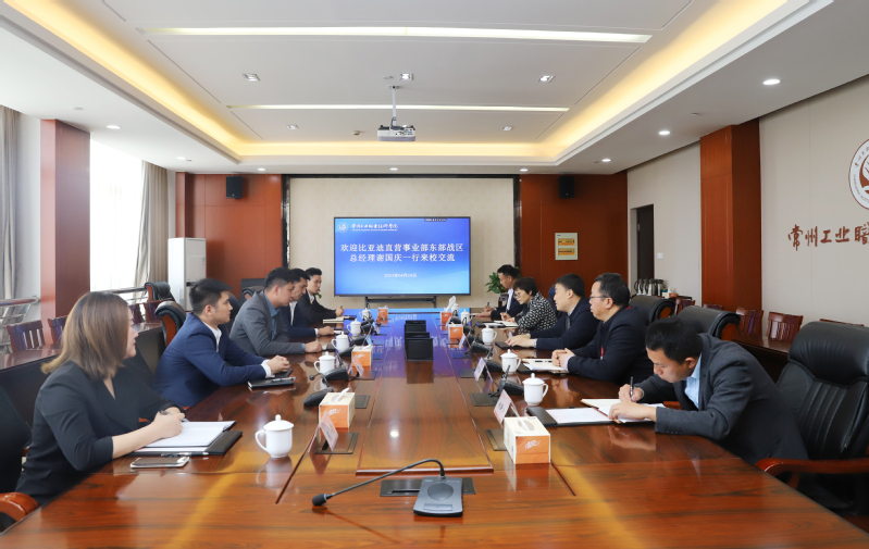 席海濤對比亞迪直營事業(yè)部團隊的來訪表示熱烈歡迎,他介紹了學校歷史沿革、整體辦學情況和由我校牽頭承辦的常州市新能源汽車產(chǎn)教融合共同體的推進情況。他表示,學校圍繞常州市“532”發(fā)展戰(zhàn)略和“新能源之都”建設要求,充分發(fā)揮校企協(xié)同育人優(yōu)勢,構建新發(fā)展格局,推進高質量發(fā)展。他希望,學校與比亞迪深入合作,緊跟未來產(chǎn)業(yè)布局,提升人才培養(yǎng)與行業(yè)需求的匹配度,共建新能源汽車“制造+服務”產(chǎn)業(yè)鏈人才培養(yǎng)新生態(tài)。