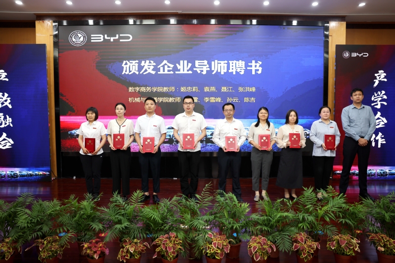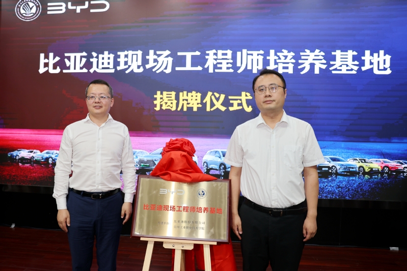 會上,還舉行了常州市新能源汽車產教融合共同體“新能紅盟”揭牌儀式、比亞迪現場工程師培養基地揭牌儀式、校企雙導師聘任儀式等,數字商務學院21統計核算633班章松蓉作為現場工程師班學員代表發言,謝國慶代表比亞迪發布“歸巢”計劃。