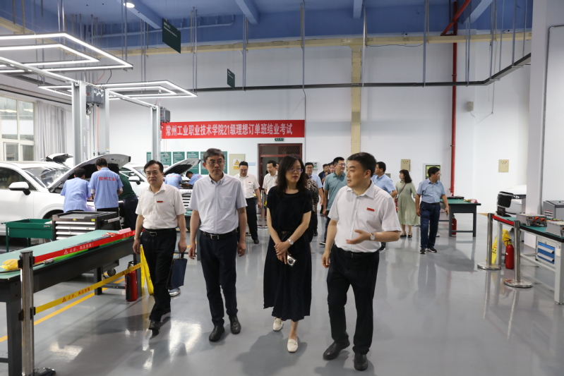 7月7日下午,江蘇省教育廳職業教育處、高等教育處處長徐慶、云南省教育廳領導一行帶隊走訪我校,調研了新能源工程中心和鄧建軍工匠學院。江蘇省教育廳職業教育處主任王卿,常州市教育局副局長王華剛、高等教育與職業教育處處長彭利平,我校黨委書記席海濤,黨委副書記、校長楊勁松等陪同調研。