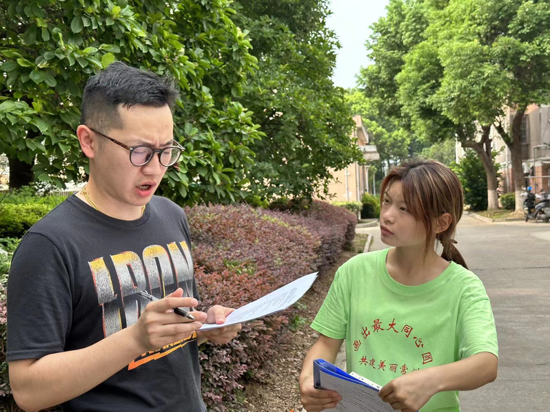 隊(duì)員們分成小組進(jìn)社區(qū)調(diào)研。宣講組成員向小區(qū)居民發(fā)放人與自然和諧共生的現(xiàn)代化及生態(tài)文明法治宣傳手冊,并向他們宣講黨的二十大關(guān)于生態(tài)文明建設(shè)的思想。訪談組成員圍繞碳達(dá)峰碳中和、美麗常州建設(shè)等相關(guān)問題,通過線上線下相結(jié)合的方式進(jìn)行調(diào)研,同時(shí)展開對居民的深度訪談。在宣講、調(diào)研和訪談過程中,隊(duì)員們從居民的衣、食、住、行等日常生活方式談起,和居民拉家常、講道理,暢聊垃圾分類、減碳減排等綠色環(huán)保問題。居民們都認(rèn)為,大學(xué)生到社區(qū)進(jìn)行理論宣講和科學(xué)知識普及是服務(wù)廣大老百姓的有益實(shí)踐活動(dòng)。