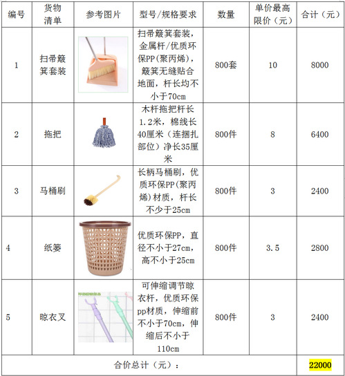 一、項目名稱:常州工業職業技術學院學生公寓保潔用品采購