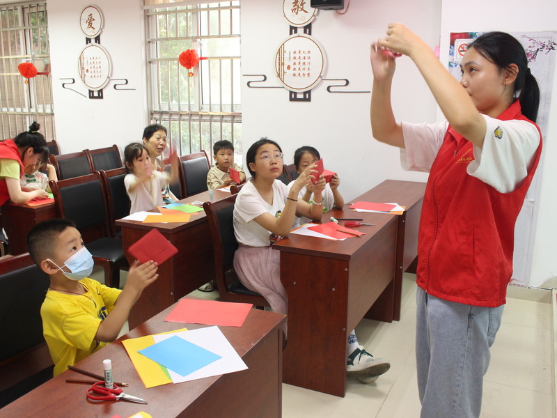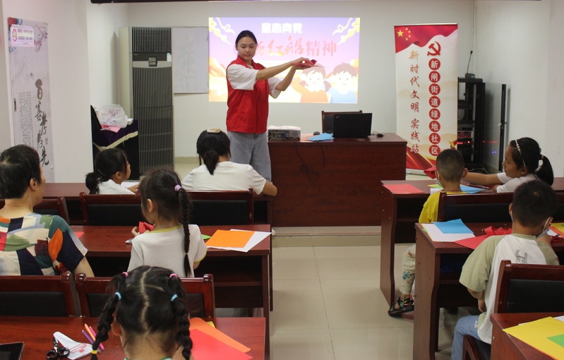 團隊走進綠地社區,為小朋友們講解了“紅船精神”的發展由來、具體內涵和歷史價值,并帶領大家一起制作紅船折紙,讓“紅船精神”和紅船文化扎根于青少年心中,讓紅色基因在孩子們心中落地生根。團隊充分借助大學生的專業知識和技能,將課堂搬進社區和鄉村,讓青年與基層“雙向奔赴”。