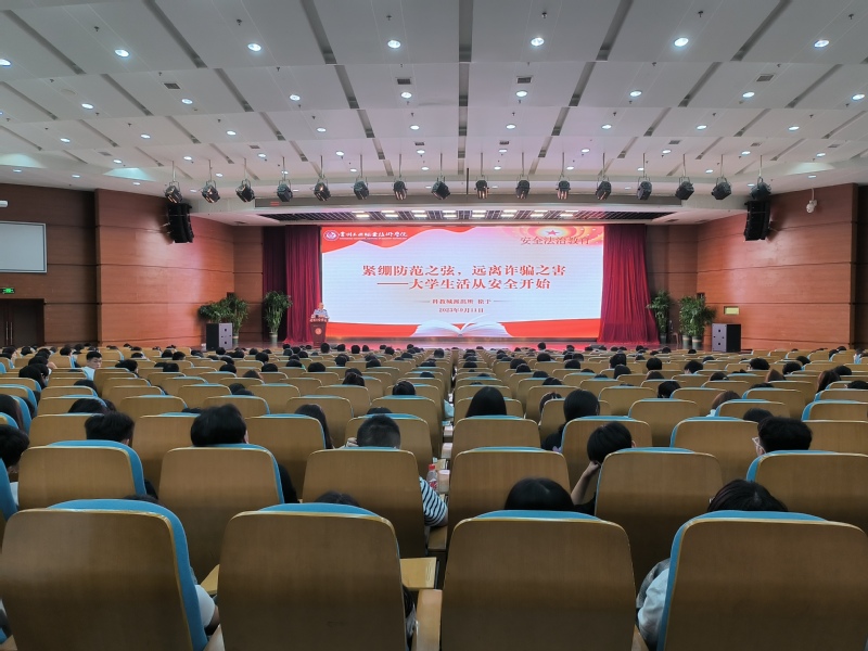會上,徐于從什么是通訊網絡詐騙、通訊網絡詐騙的常見形式以及如何識別防范電信詐騙等方面,為大學生展開細致解讀。他強調大學生要保護好個人信息,謹防網絡刷單,通過案例講解等形式,引導學生注意保護個人隱私,提高安全防范意識。同時,徐于要求全體新生加強理論學習,堅定不移的聽黨話,跟黨走,為全面建設社會主義現代化國家貢獻青春力量。最后,潘逸作了總結講話,他要求全體新生以本次安全法治教育為起點,不斷加強安全法治知識學習,自覺遵紀守法,嚴守校規校紀,做一名知法守法的合格大學生。