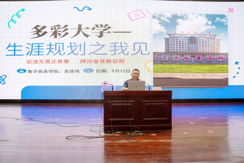 為幫助大一新生了解大學(xué)生活的變化,盡快適應(yīng)大學(xué)生活,順利完成角色轉(zhuǎn)變,明確未來(lái)發(fā)展方向,9月13日晚,數(shù)字商務(wù)學(xué)院開(kāi)展了“多彩大學(xué)——生涯規(guī)劃之我見(jiàn)”新生主題講座。學(xué)院黨總支副書記吳佳偉主講、23級(jí)班主任以及全體新生參加會(huì)議。