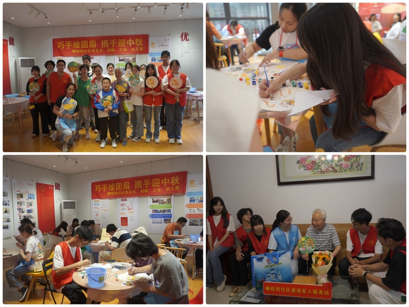 中秋節(jié)前夕,藝術創(chuàng)意學院星火青年志愿者協(xié)會積極聯(lián)系校外實踐基地,聯(lián)合天寧區(qū)椿桂坊社區(qū)開展“巧手繪團扇,攜手迎中秋”中秋節(jié)主題志愿服務活動。藝術創(chuàng)意學院大學生志愿者和社區(qū)居民們一起,在社區(qū)龍城紅色驛站開展中秋主題活動。大學生志愿者們耐心地協(xié)助社區(qū)居民繪畫團扇,充分發(fā)揮想象力,將自己對中秋的理解通過繪畫表達出來。活動過程中,大家感受到了濃濃的中秋節(jié)日氛圍。大學生志愿者們還帶著自己親手繪制的中秋團扇和社區(qū)工作人員一起拜訪了居住在社區(qū)內的抗美援朝老兵,給老兵送去了溫暖和祝福。