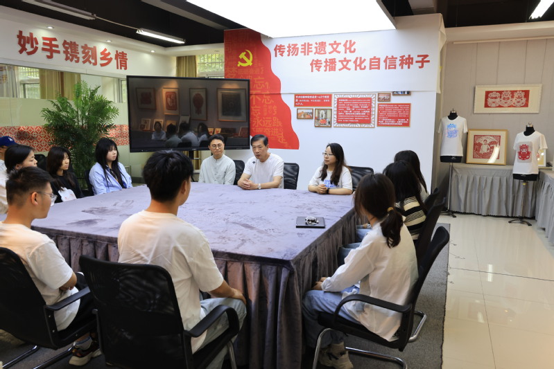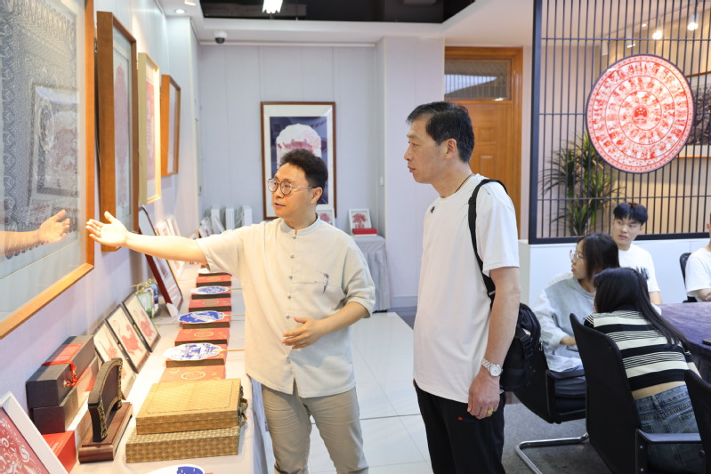 在傳統工藝教研室主任李斌老師的帶領下,張金興參觀了金壇刻紙楊兆群大師工作室,詳細了解了目前工作室活動開展、非遺課程開設、刻紙項目體驗等情況,并在講解下,欣賞了工作室師生創作的非遺金壇刻紙和紅色文創作品。張金興對金壇刻紙作品中蘊含的精湛技藝和豐富的文化內涵表示贊賞,并對學生參與到非遺技藝的學習和體驗,繼承和發揚中華優秀傳統文化表示高度肯定。參觀結束后,張金興還以“傳承非遺匠心,堅定文化自信”為題,為同學們開展了一場精彩的新思想公開課。講座中,張金興老師鼓勵同學們繼續傳承和弘揚中華優秀傳統文化,堅定文化自信,充分發揮自己的專業特長,努力學習和傳承金壇刻紙技藝,為中華文化的傳承和發展貢獻自己的力量。