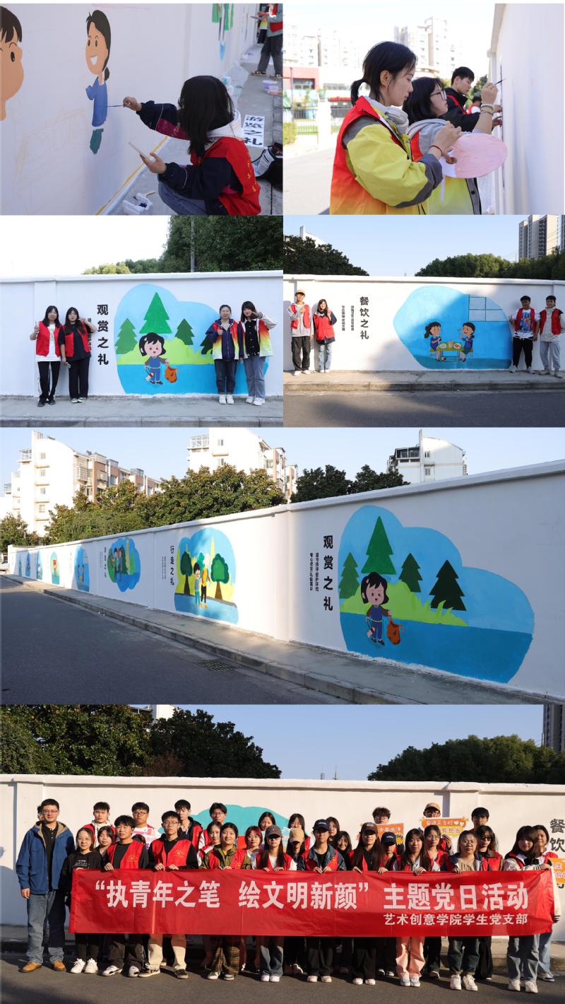 學生黨員強穎婷表示:“這次墻繪活動不僅提高了我們的專業技能,更讓我們深刻體會到了傳統文化的內涵和文明禮儀的重要性。能夠用自己的專業為社區貢獻一份力量,我感到非常榮幸。”