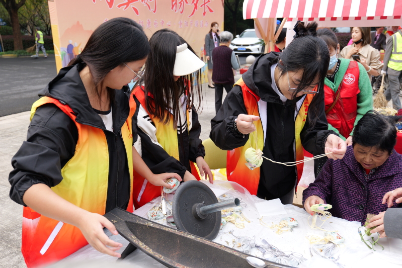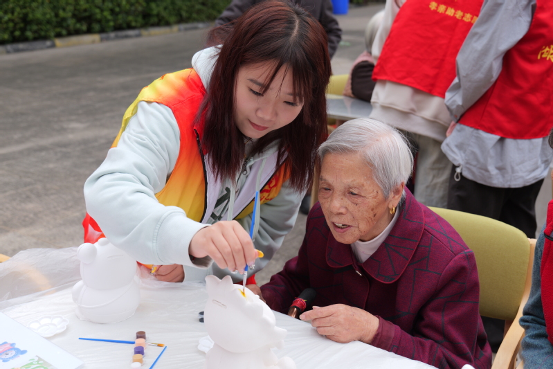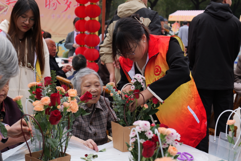 活動現(xiàn)場,老人們笑容滿面,精神抖擻,志愿者們和爺爺奶奶們一起,圍爐煮茶,聽他們講年輕時候的故事。在情濃重陽主題區(qū),志愿者幫助警察們一起給老人們進行反詐宣傳,幫助牙科大夫給老人們進行牙科義診,還幫助護工給老人們進行艾灸服務(wù);在活力重陽主題區(qū),志愿者們輔助老人們參加“套住好運”的套圈游戲,用筷子夾住乒乓球放到杯子里的“‘筷’樂星球”趣味乒乓,還有“頭腦風暴”的一起搭積木;在趣味重陽主題區(qū),志愿者們帶著奶奶們繪制自己的陶瓷娃娃,一起“花遇重陽”,巧手插花。