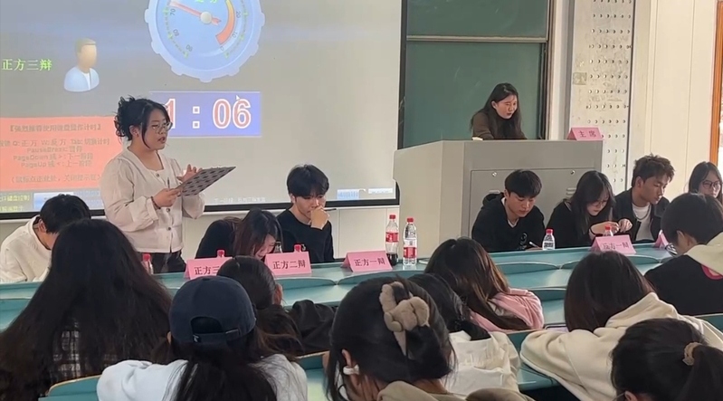 為豐富新生的校園文化生活,提高大學(xué)生敏捷的思維和臨場應(yīng)變能力,樹立團隊意識,10月22日,數(shù)字商務(wù)學(xué)院思辨社開展“頂峰相遇”新生表演賽,來自21、22、23級的辯手及熱愛辯論的觀眾齊聚一堂。