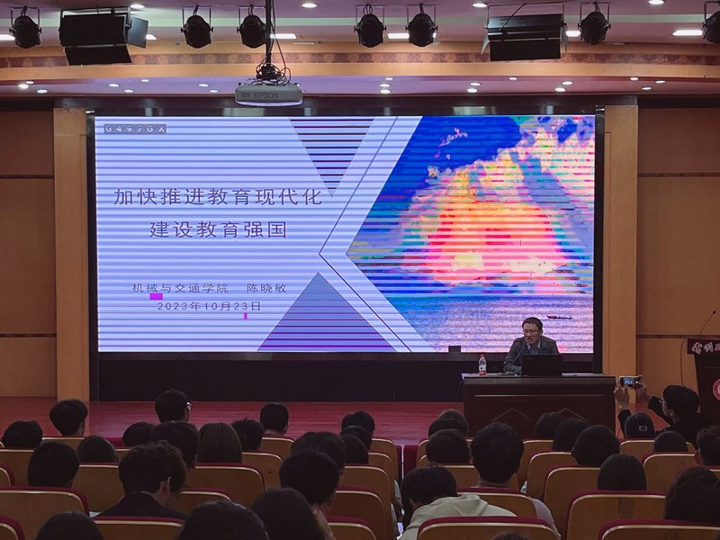 為進(jìn)一步組織引導(dǎo)廣大青年學(xué)生深入學(xué)習(xí)宣傳貫徹習(xí)近平新時(shí)代中國(guó)特色社會(huì)主義思想和黨的二十大精神,發(fā)揮黨建帶團(tuán)建引領(lǐng)作用,高質(zhì)量完成團(tuán)校培訓(xùn),10月23日,機(jī)械與交通學(xué)院團(tuán)委開(kāi)展團(tuán)校開(kāi)班第一課,邀請(qǐng)機(jī)械與交通學(xué)院黨總支書記陳曉敏作開(kāi)班第一講,團(tuán)課主題是《加快推進(jìn)教育現(xiàn)代化,建設(shè)教育強(qiáng)國(guó)》。這堂團(tuán)課如同一場(chǎng)思想的盛宴,讓青年學(xué)生們對(duì)現(xiàn)代化教育和教育強(qiáng)國(guó)有了更深刻的認(rèn)識(shí)。