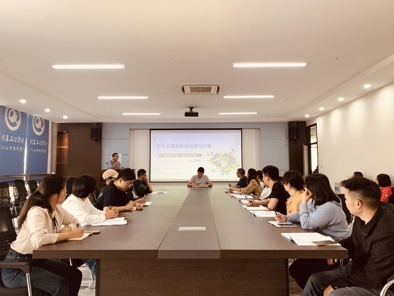 為深入學習貫徹習近平總書記關于教育的重要論述,扎實落實“三全育人”工作機制,提高班主任教師心理健康教育技能和應對學生心理危機能力,培育學生積極樂觀、健康向上的心理品質。10月24日,信息工程學院召開班主任、輔導員學習交流會,心理輔導員顧永振面向所有22級、23級班主任、輔導員教師開展《學生心理危機的識別與干預》專題講座。