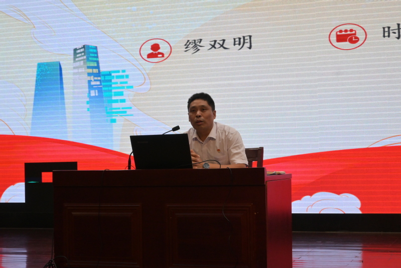 繆雙明主要聚焦于“中國共青團簡介”,習近平總書記對新時代青年的“六點要求”,“新時代如何做好青年工作”,“青年不忘初心跟黨走,奮勇建功新時代”四個部分為大家進行講解。在此期間,繆雙明指出,身為新時代中國青年,我們必須牢記習近平總書記的囑托,要堅定不移聽黨話、跟黨走,立志做有理想、敢擔當、能吃苦、肯奮斗的新時代好青年??婋p明還結合實際情況,就如何提高團員的綜合素質、發揮團員的積極作用,以及加強團組織建設等方面進行了詳細闡述。隨后,他邀請大家分享自己的入團動機,多位同學提出要將個人理想融入社會,增強思想意識。同時,他鼓勵團課學員們能夠努力學習專業知識、積極參加志愿服務,不斷提高自身素質和能力水平,讓青春在全面建設社會主義現代化國家的火熱實踐中綻放絢麗之花。