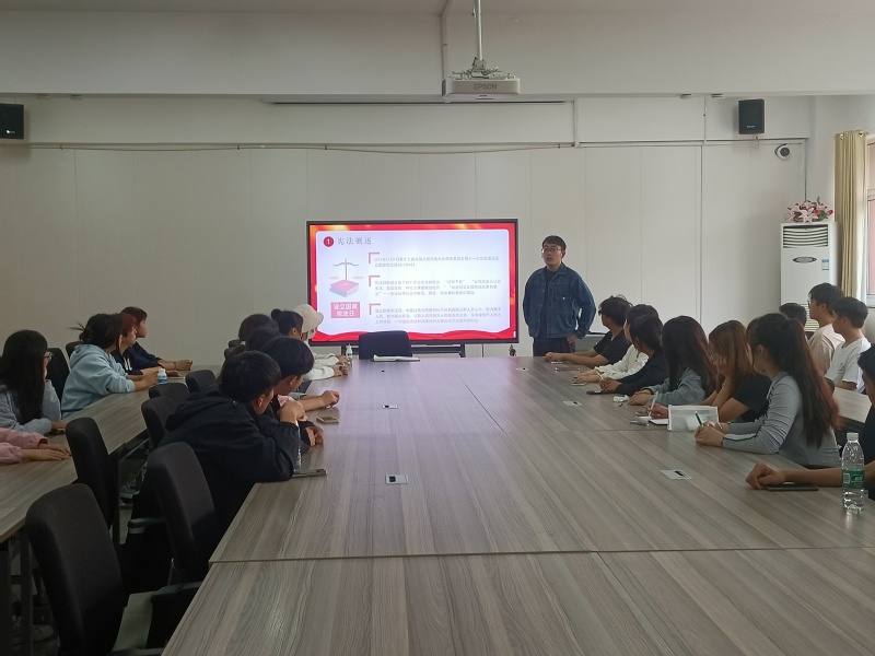 開展憲法知識宣講。輔導員老師通過課堂講授和觀看憲法宣傳視頻的方式向同學們詳細闡述了為何高校學生要學習憲法、樹立法治意識、遵守法律法規,梳理了我國憲法的發展歷程,同時通過部分案例講解了高校學生學憲法、懂憲法的重要性。